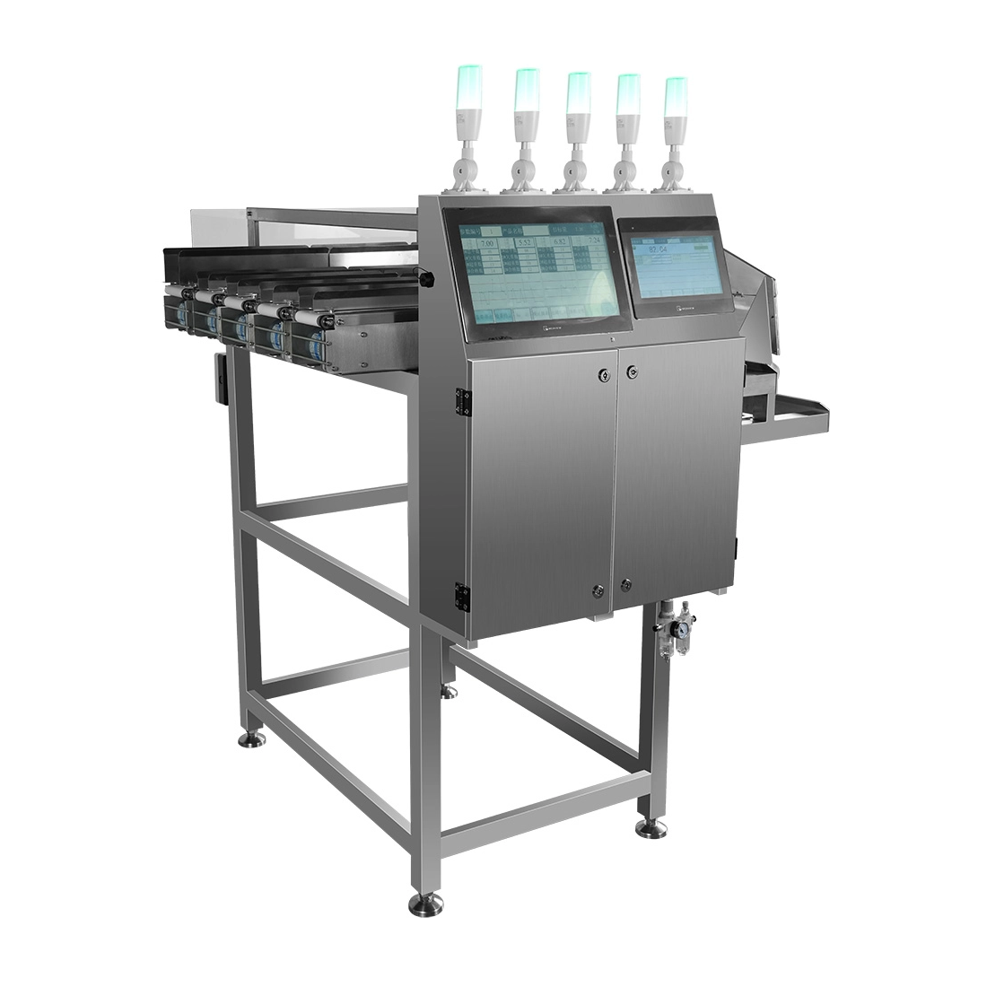 Para este cliente, também é necessário um detector de metais após o controlador de peso de 5 pistas, conforme abaixo.